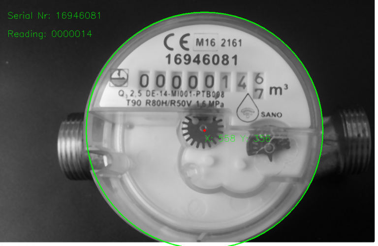 Machine vision is used for identifying measurement devices serial number, measurement reading and pointer position. Information is sent to server over mobile data.